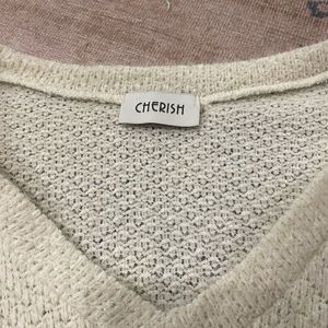Details: v neck , “fuzzy” material, super soft, worn once, slightly longer in the back