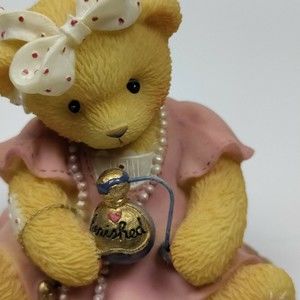 Cherished Teddies Ava You Make Me Feel Beautiful Inside Bear with Perfume Bottle 1998 Enesco Figurine #546526 with box and paperwork. Pre-owned but in good condition. Item has no chips, cracks, or crazing. The box does show some signs of wear from age, storage, and use. Please reference the images for more details.