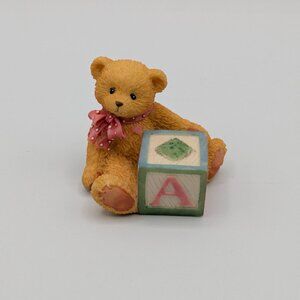 Cherished Teddies Bear with ABC "A" Block (158488A) from 1995, pre-owned in excellent condition. Includes original box, which shows wear consistent with age.