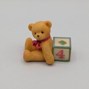 Cherished Teddies Bear with Number 4 Block (302864) mini figurine from 1997. Pre-owned in excellent condition. The box is showing wear due to age.