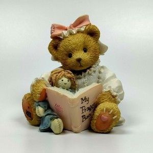 Cherished Teddies Christine My Prayer Is For You Girl Bear With Doll 1994 Enesco Communion Figurine #103845 with box. Pre-owned but in good condition. Item has no chips, cracks, or crazing. The box does show some signs of wear from age, storage, and use. Please reference the images for more details.