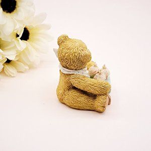 Enesco Cherished Teddies Age 3 "Three Cheers for You" miniature resin teddy bear. Adorable mini baby bear for someone special!