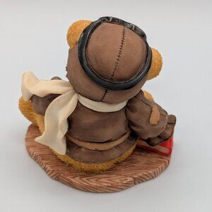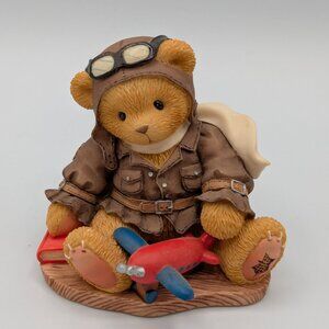 Cherished Teddies Lance "Come Fly With Me" (337463), 1997 figurine released for the 1998 National Event, featuring a boy bear with a toy plane. Pre-owned in excellent condition with original adoption certificate included. Box is showing wear due to age.