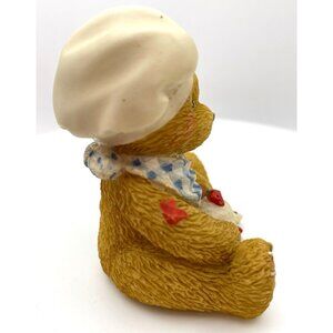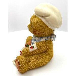 This Cherished Teddy figurine is Mathew and features a chef teddy bear making a strawberry shortcake. 1995 Priscilla Hillman style #156299, Reg No. 5E0/585.