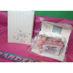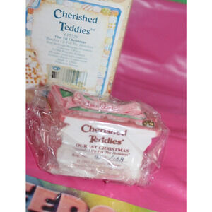 New Old Stock Enesco Priscilla Hillman Cherished Teddies Our First Christmas Bundled Up For The Holidays 617229 1994 Figurine, in box. The foam wrapping has some wear, and discoloring from age, the box also has wear, sticker residue, one of these boxes have marker marks in the inside. All Comes As Seen, I do have ONE that is numbered 951/168 that will ship FIRST, all others standard as seen in the remaining photos, no numbers. adult owned. From A non smoking home. All comes Exactly as shown with all shown, with exception to props and mannequins. Find this in my Figurines category.