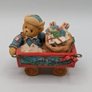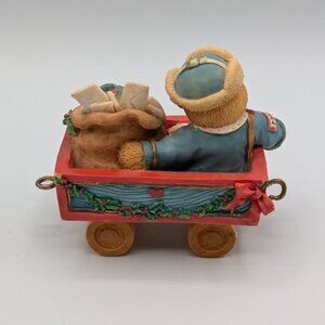 This 1996 Cherished Teddies Tony figurine, titled "A First Class Delivery For You!", features a charming boy dressed as a mailman delivering holiday cheer in his mail car. Pre-owned in excellent condition, it’s a perfect addition to any Cherished Teddies collection or festive display. The original box shows wear consistent with age.