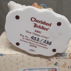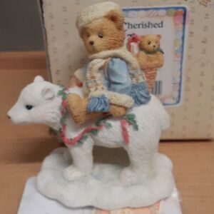 Cute Cherished Teddy - Eric, " Bear Tidings of Joy " polar bear figurene. 1994 Priscilla Hillman by Enesco.