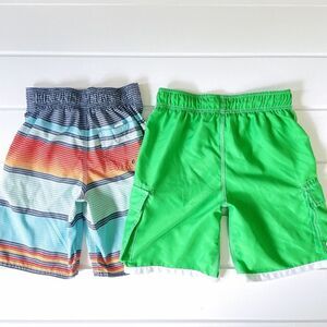 Cherokee And Joe Boxer Boy's Green Striped Board Swim Shorts Bundle Size Small/Medium