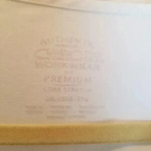 Cherokee Authentic Workwear white srub jacket. Size 2XL. Zipper front. Double pockets right front. Single pocket left front. Stitched detail on back. 55% Cotton, 42% polyester, and 3% spandex. Very small hole noted to right upper collar. Barely noticeable. Otherwise, great gently used condition.