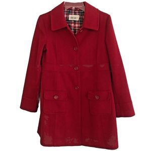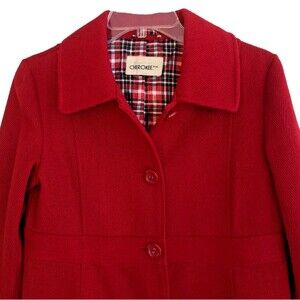 Cherokee Baby Doll Car Coat Womens Sz M VTG Red Single Breasted Retro Rockabilly
