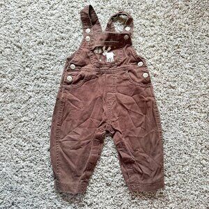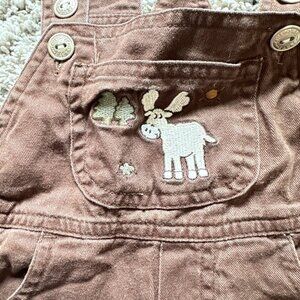 Cherokee Baby Vintage 6/9 Month Chocolate Brown Overalls Moose Embroidered Forest