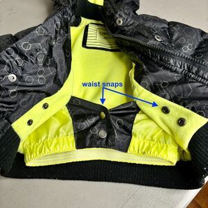 Color: Black outside/geometric shapes, Inside fleece is yellow/green neon