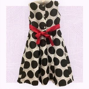 Cherokee Blk & Wht Polka Dot Pink Sash Holiday Formal Dress Up Girls Dress Sz 7