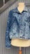 Vintage acid-wash denim jacket in a deep blue wash with heavy marbling throughout. Cropped cut with chest flap pockets and classic button front. Strong 80s/90s vibe, perfect for layering in spring, fall, or cool summer nights.