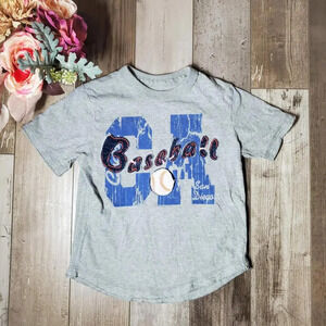 Cherokee Boys Gray Short-Sleeved Baseball Themed T-Shirt Size Small 6/7 EUC