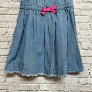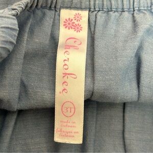 Cherokee Chambray Size 3T Sleeveless Dress Pink Bow Embroidery Ruffle Hem. Good pre-owned condition.