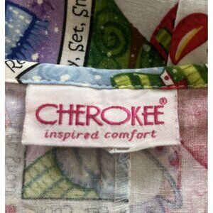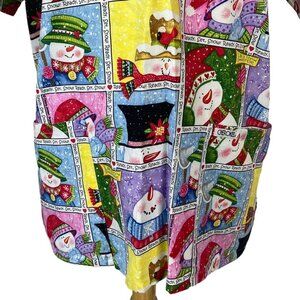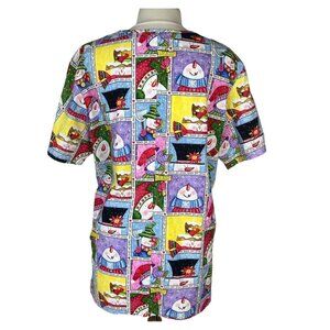 Cherokee Christmas Snowmen Scrub Top Shirt Womens Medium White Blue Vneck