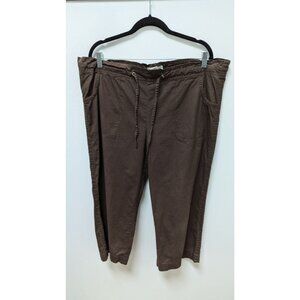 Cherokee Dark Brown Drawstring-Waist Casual Pants. Size Large. Gently used, with minor fading/wear to material. It has a drawstring waistband, 4 pockets, and a wide-leg fit.
