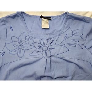 Cherokee Floral Scrub Top Medical Uniform Short Sleeve Blue Size Small