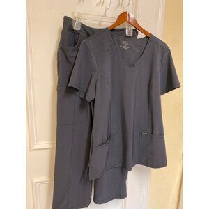 Cherokee Infinity Charcoal Grey Scrub Uniform Set Size Large Top & Medium Petite