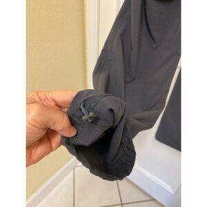Pants with elastic waist and drawstring measures 16” across not stretched