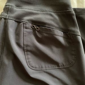 These scrub pants are in the color “Pewter”. They have yoga ribbed waistband with 2 front pockets, 1 back pocket and 1 side cargo pocket. Super comfortable!