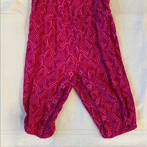 Cherokee Pink Diamond Geometric Pattern Sleeveless Full Leg Jumpsuit with Snap Button Closures