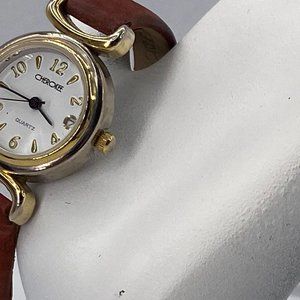 Cherokee Lady's Watch 7.5 inch Leather Buckle Band Stainless Steel Snap Back New