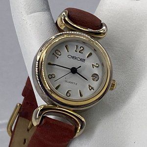 Cherokee Lady's Watch 7.5 inch Leather Buckle Band Stainless Steel Snap Back New Battery