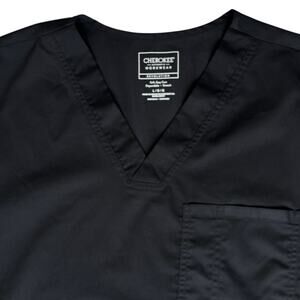 Cherokee Large Black V-Neck Scrub Top Medical Hospital Lab Uniform Stretch Shirt WW670