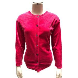 Cherokee Large Red Velour Button Front Long Sleeve Cardigan Top City Chic Casual