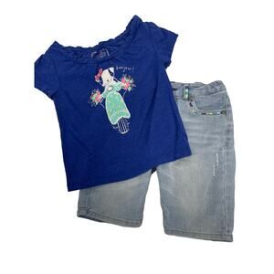 Cherokee Levi's Girls' Blue Graphic Shirt & Denim Jean Shorts Outfit Size 5T/6X