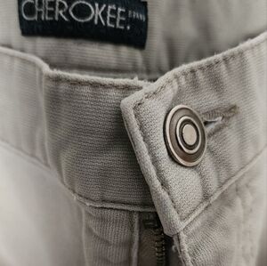 Brand: Cherokee Department: Men Color: Khaki Size: 44 Type: Shorts Style: Carpenter Size Type: Regular Occasion: Workwear Pattern: Solid Material: 100% Cotton Closure: Button & zipper Features: Easy Care Condition: Pre-owned, In Good Condition. Approx Measurements Waist size: 44 Rise: 13" Length from waist to hem 20"