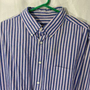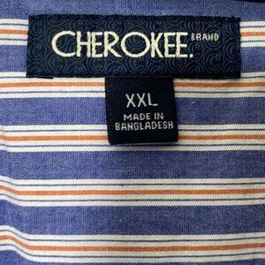 Cherokee Mens Shirt Size XXL Long Sleeve Stripe Button Down Blue White Casual
