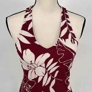 Cherokee Red Floral Hawaiian Halter Tie Tankini Top Swimsuit Built in Bra Size 8