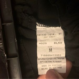 Medium size pants and small shirt. Used but great condition. Shirt is so comfortable. Has stretchy side panels.