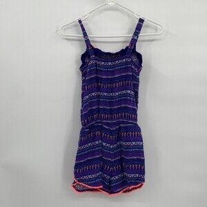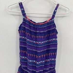 Cherokee Shorts Romper Tank Blue Print Eyelet Trim L 10/12