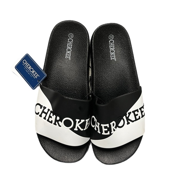 Stylish Cherokee slides in black and white. Perfect for casual wear.