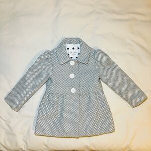 Elegant Cherokee peacoat with a textured grey and white design. Features a classic collar and lined for warmth. EUC. Size 3T.