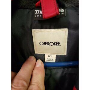 Cherokee Toddler 5T Thinsulate Insulation Red Black Striped Winter Hooded Jacket.