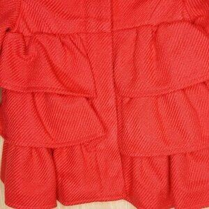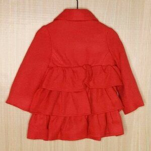 Cherokee toddler girl’s pink dressy coat 12 months. Has cute ruffle layers. Great condition. Measurements are: 11 ½" sleeve, 16" from shoulder to hem, and 11" from armpit to armpit.
