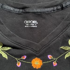 Cherokee V Neck Tee Floral Embroidered T-Shirt Loose Relaxed Medium Short Sleeve