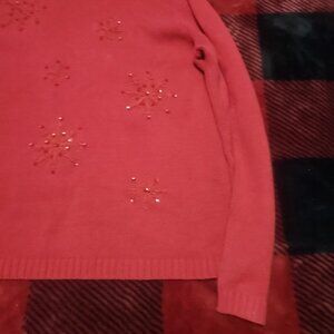 Cherokee vintage snowflake turtleneck sweater. red. size large. long sleeves. sequins. 60% acrylic 40% cotton. hand wash cold and dry flat. smoke free home.