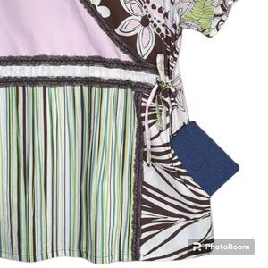 Cherokee Women's Scrub Top! Floral Pattern, Stripes, Faux Wrap, Like New