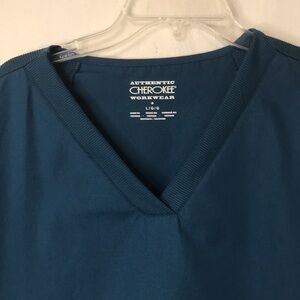 Cherokee Work Wear Women’s Scrub Top Teal Size L This top has stretchy side panels for a comfortable easy fit. Worn once, Like new!