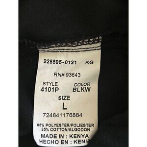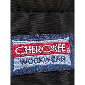These Cherokee Workwear scrub pants offer a comfortable fit with a drawstring waistband, tailored for unisex use. Made from a blended fabric of 65% polyester and 35% cotton, they are durable yet comfortable for long hours. The black color provides a professional look, making them suitable for various medical settings. In great condition.