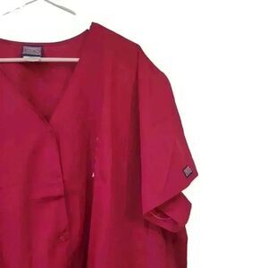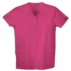 Cherokee Workwear Originals Women's Raspberry Pink Poly/Cotton V-Neck Snap Front Short Sleeve Top w 3 Pockets NEW NWT sz 5XL XXXXXL