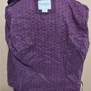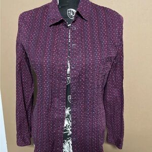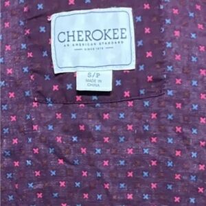 Cherokee Button Down Long Sleeve Size Small Petite 100% Cotton Burgundy W/stars