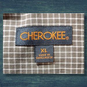 Cherokee dark sage button-down shirt with long sleeves and one pocket, in Excellent Used Condition. Size XL. Made in Bangladesh of 100% cotton.
