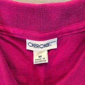 Cherokee short sleeve polo shirt. Color is more of a raspberry. 3 buttons at neck. Not sure of I ever wore it. Measurements in pics. Great condition. No rips, stains, or tears. From a smoke free and pet free home.